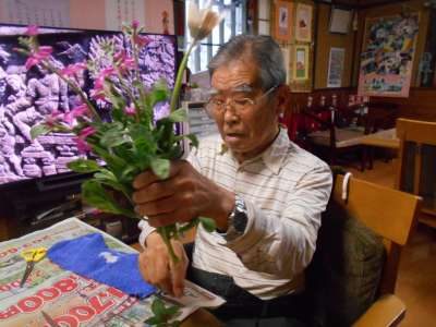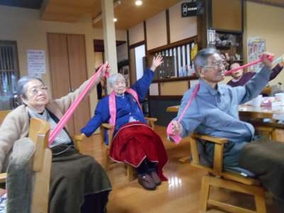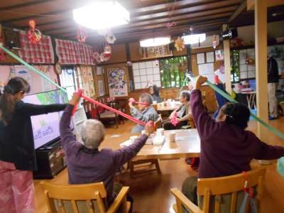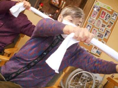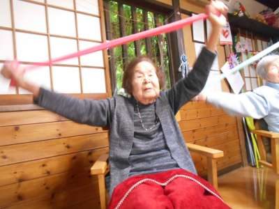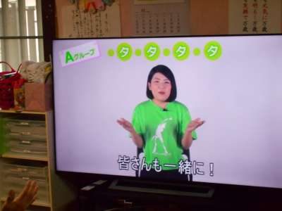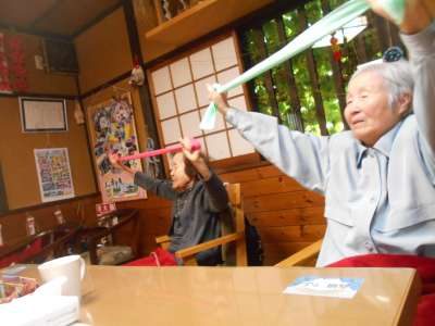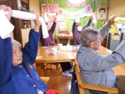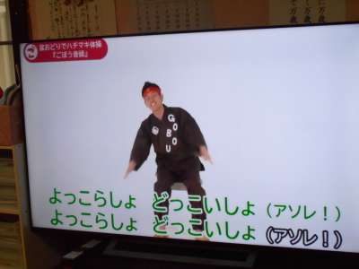 午前中最後の体操は、ごぼう先生のハチマキ体操