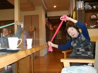 るんるん (音符)旅の夜風るんるん (音符)でゴムチューブを使っての音楽体操ひらめき