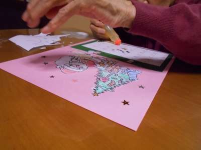 絵を貼り付けて、まわりにスパンコールもつけましょう