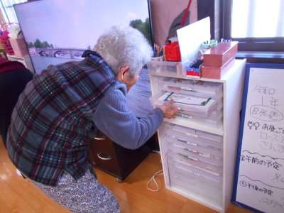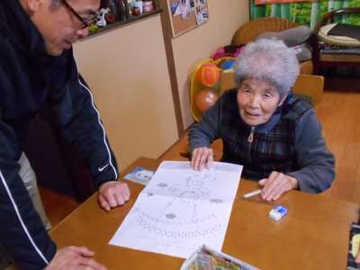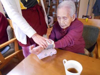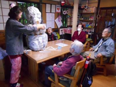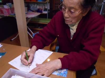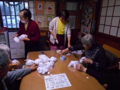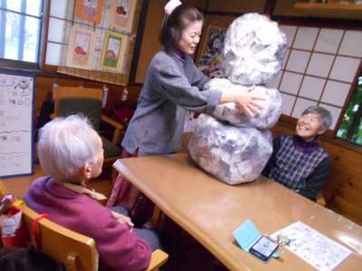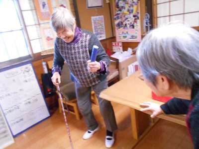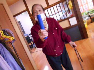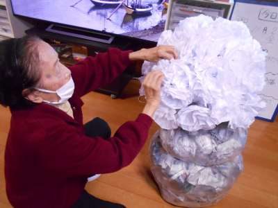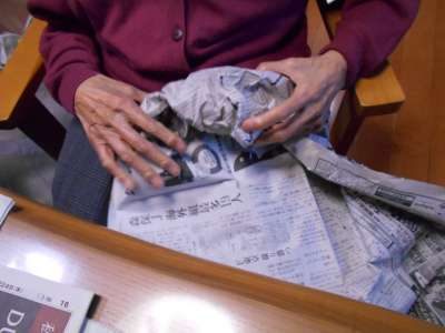 歩行訓練後は・・・新聞紙を丸めて丸めて