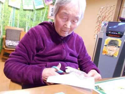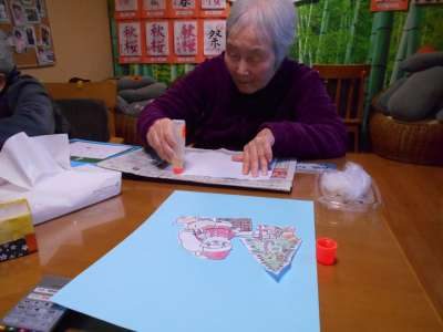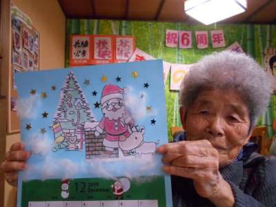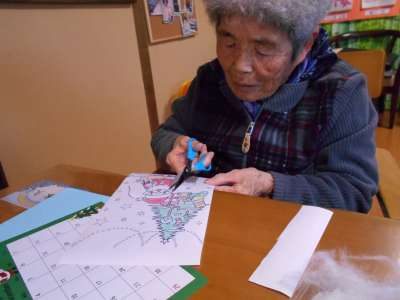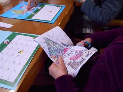 カレンダー製作チームは、切ったサンタ&ツリーを