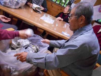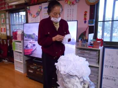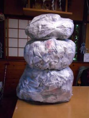 新聞紙チームは、丸めた新聞紙を大きな袋につめて