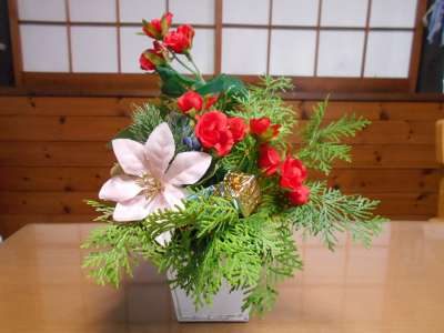 皆さんきれいにぴかぴか (新しい)クリスマスアレンジメント完成ですクリスマスぴかぴか (新しい)