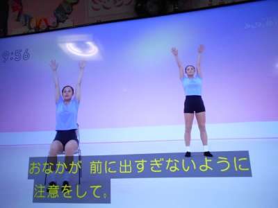 朝会前のお茶の時間でも、自然に体操しちゃいます走る人