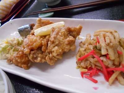 から揚げと焼きうどん、さんまの甘露煮etc・・