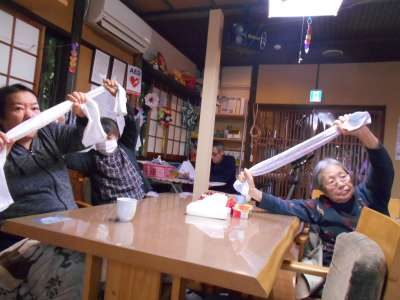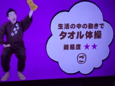 皆さんに人気のごぼう先生と一緒にdouble exclamationタオル体操で