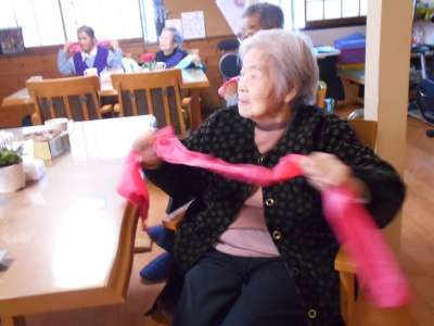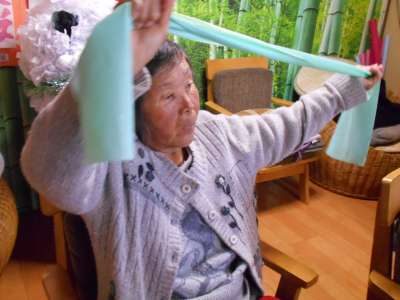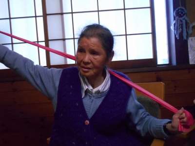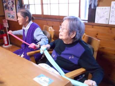 ゴムのバンドを持って手を伸ばすことを繰り返すと