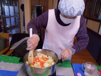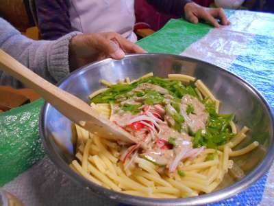 マカロニサラダの味付け・・今日は胡麻ドレッシングで