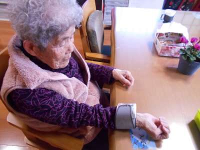 朝、うがいをしたらバイタル測定ですほっとした顔ひらめき