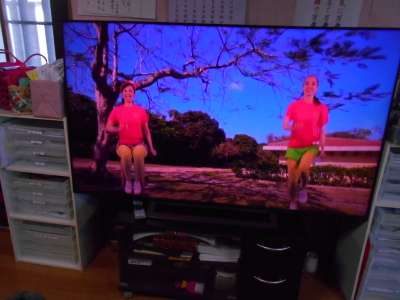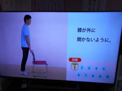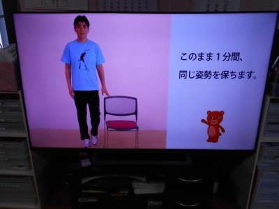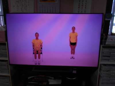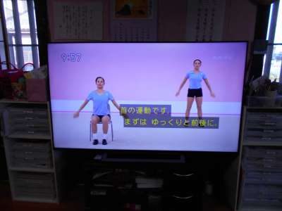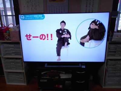 テレビでたまたまやっていた体操をはじめる父、母うれしい顔指でOKぴかぴか (新しい)