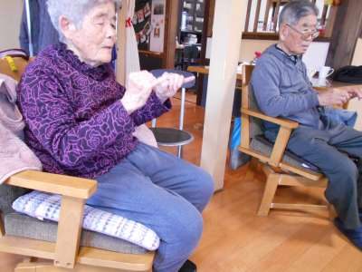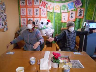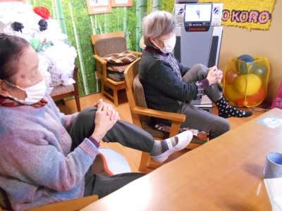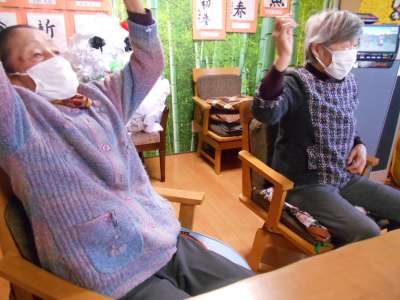 真心の恒例グッド (上向き矢印)ロコモ体操わーい (嬉しい顔)パンチハートたち (複数ハート)