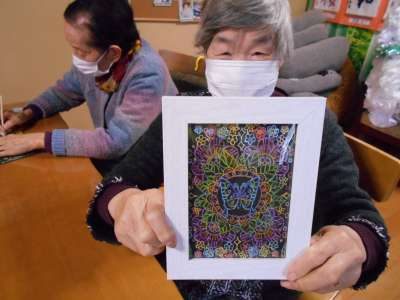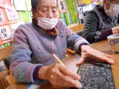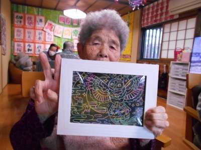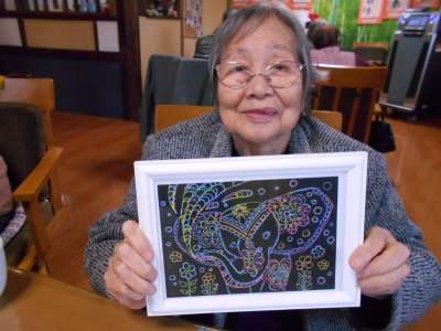 スクラッチアート挑戦ウッシッシ (顔)指でOKハートたち (複数ハート)
