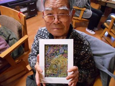 母は、二枚目の作品うれしい顔ハートたち (複数ハート)