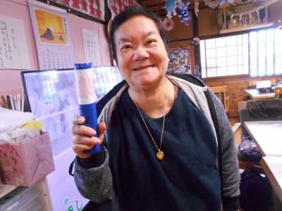 ニッコリ笑顔でバトンを持って歩いていただきました