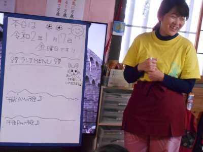 朝会では本日の予定や昼食メニュー等をお伝えしています