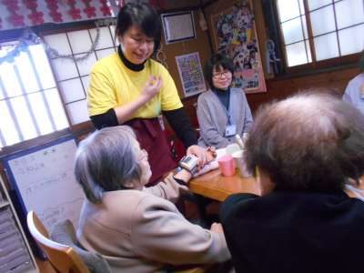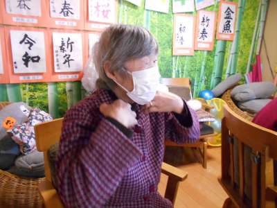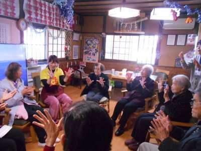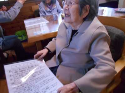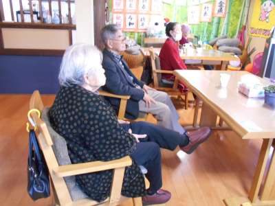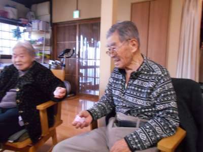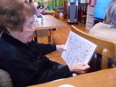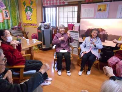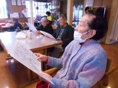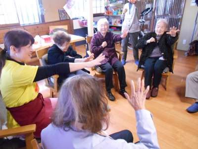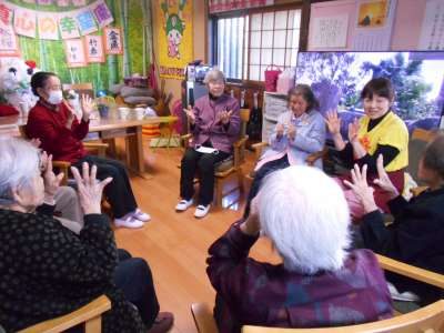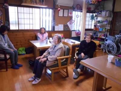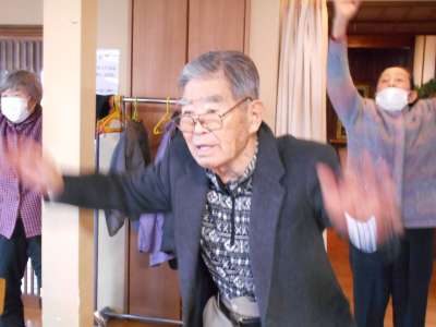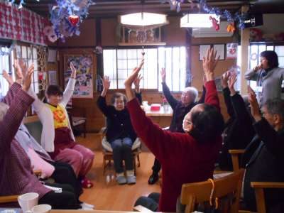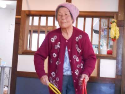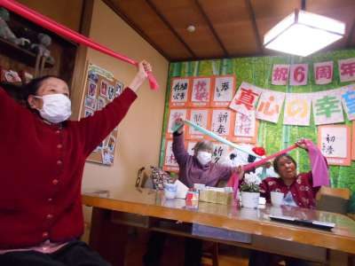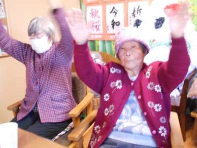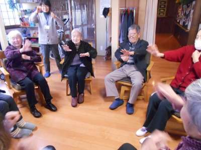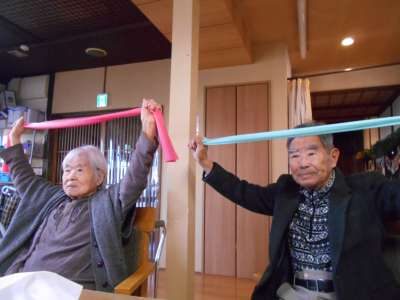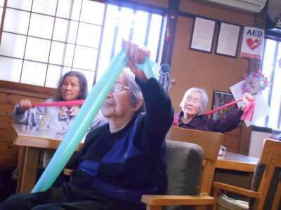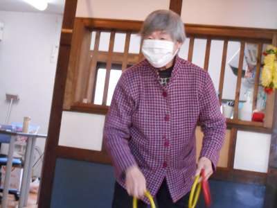 午後は、懐かしの音楽に合わせてゴムバンドを使い・・