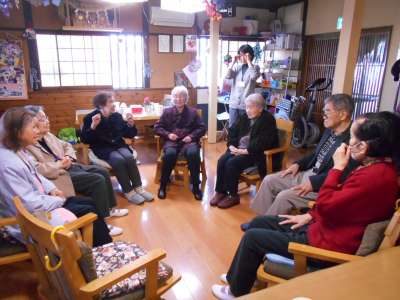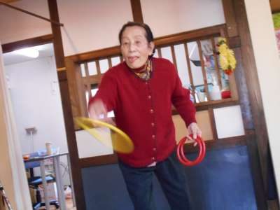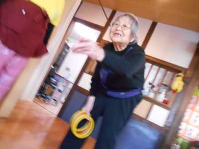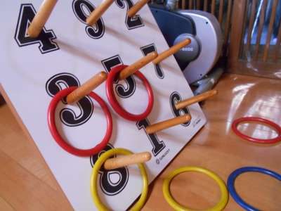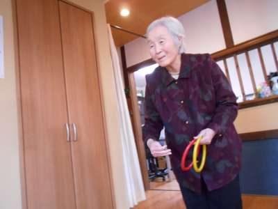 庵に戻ってひと休みの後は、輪投げにチャレンジ