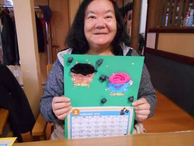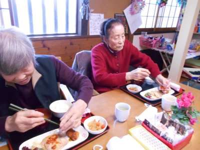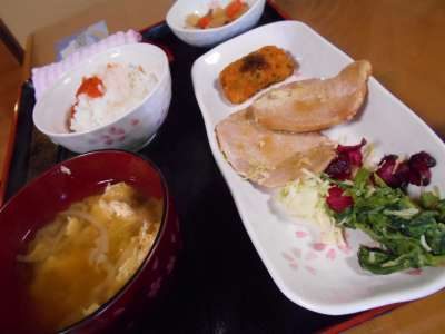 本日のお昼のメニューは、豚肉生姜焼き・イカかつ・煮物