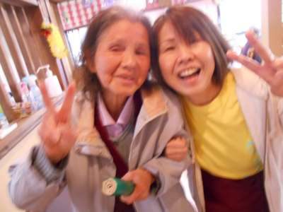 歩行訓練が苦手な母もスタッフと一緒に(و•o•)و<ファイトー