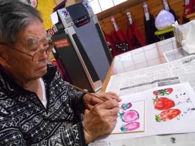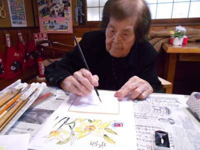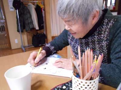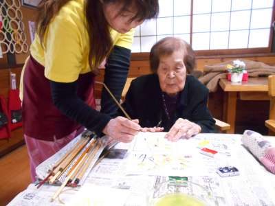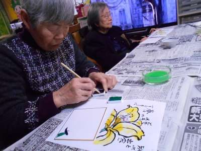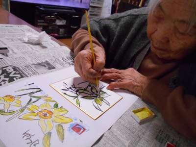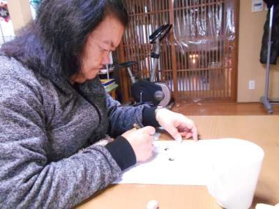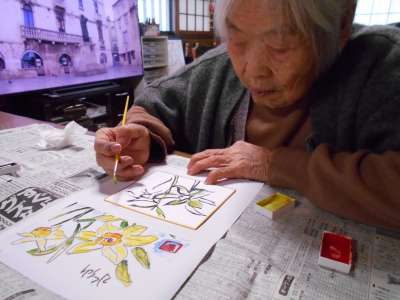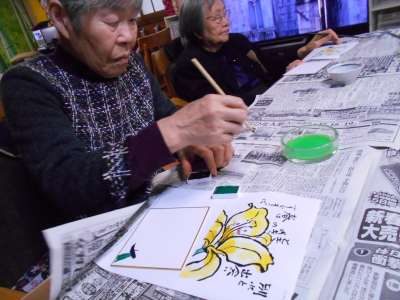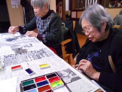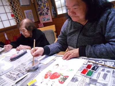 描けないわ~~と言っていた母も絵筆を握り真剣な顏
