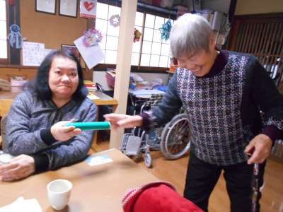今日は寒いわね~~と母 身体が暖まるまで暖かくしていて