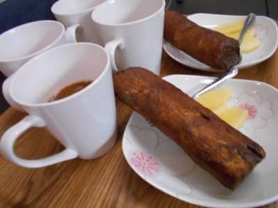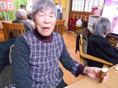 おやつは、懐かしい麩菓子とHOTリンゴをどうぞ