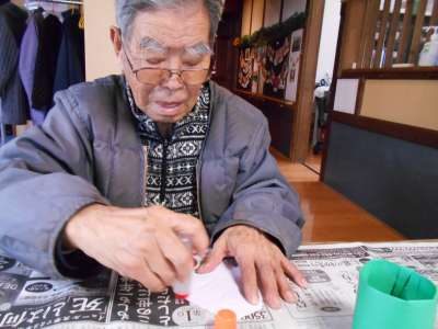 ペットボトルをカットしたものに色紙を貼り付けて・・