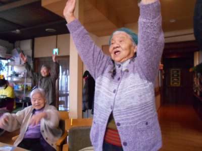 朝の体操~~~ 花笠音頭を元気よく踊って身体を