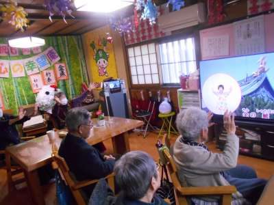 水戸黄門の歌に合わせ 足踏み体操です