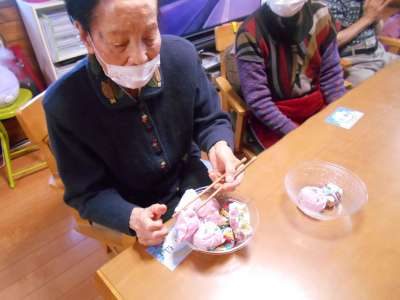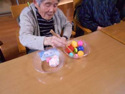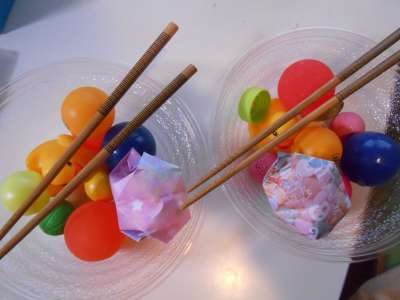 お箸を使って色々なものをつかんで別の