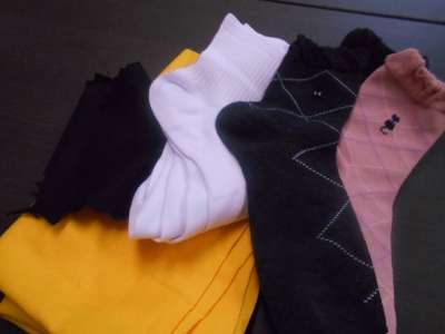 白い靴下の先の部分にティッシュペーパーを詰め込み