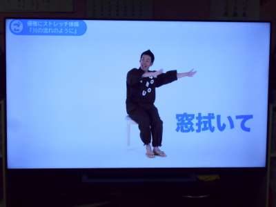 ストレッチ体操は、お馴染みの音楽に合わせて