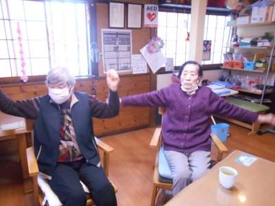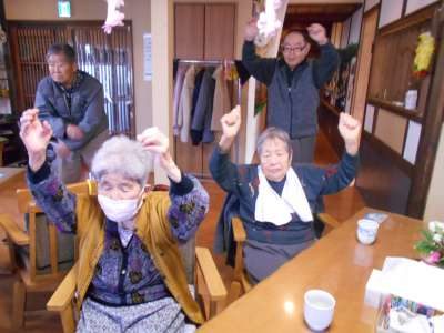 午前&午後の体操では身体を動かして元気