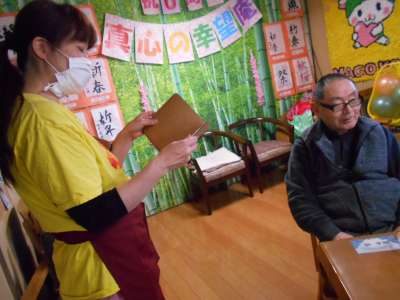 本日は、ひな祭りで皆様にお雛様とお内裏様に変身して