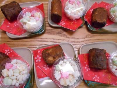ひな祭りにちなんで、ひなあられのおやつを食べて