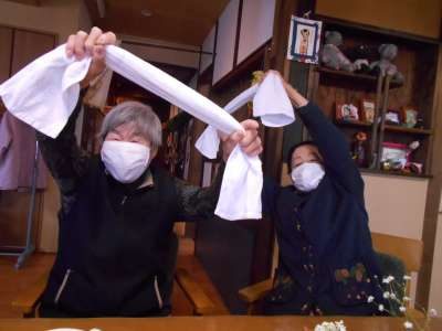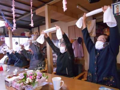タオルを持つことで筋肉の可動域を広げてゆきます