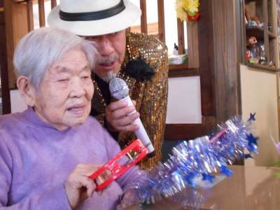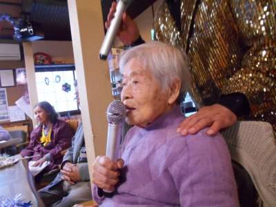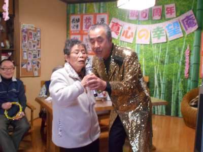 リクスト曲を一緒に歌ってニコニコ笑顔の母です