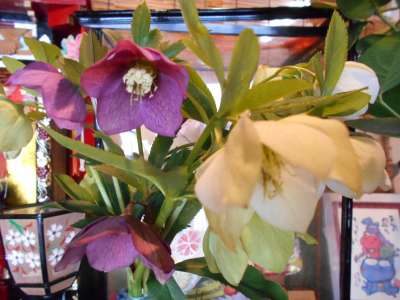 スタッフが実家のお庭から持ってきたクリスマスローズや