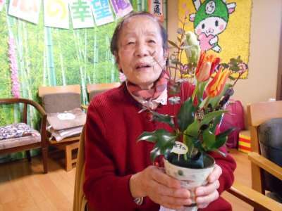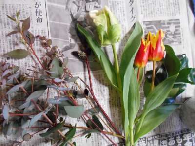 季節のチューリップを皆さんに生けて頂きました