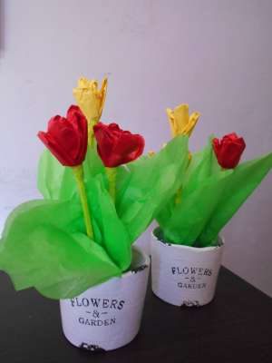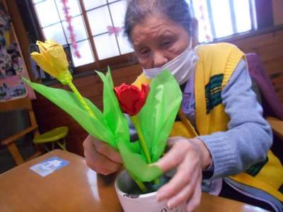 こちらのお花紙を使ってのチューリップ作り