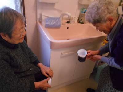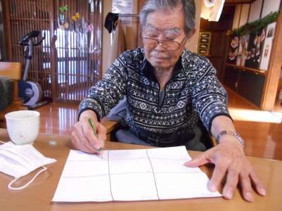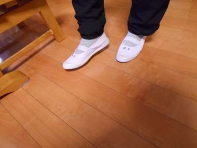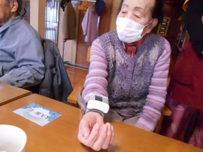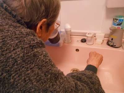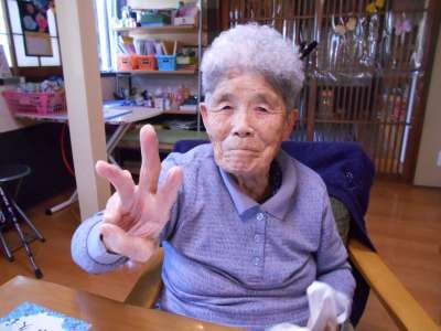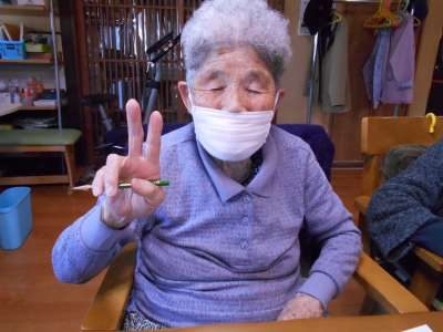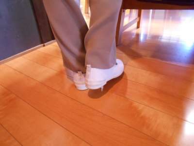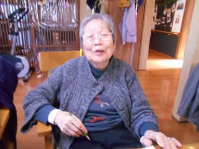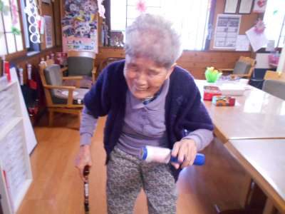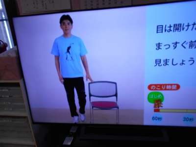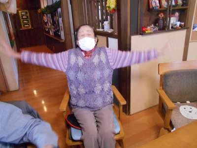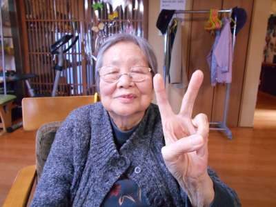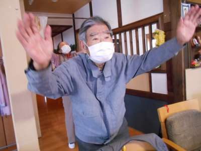 歩行訓練中、カメラを向けると恥ずかしいと母