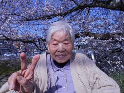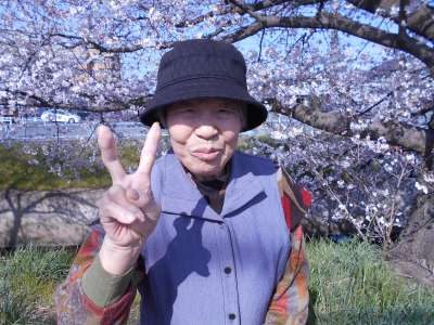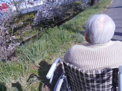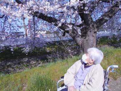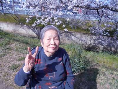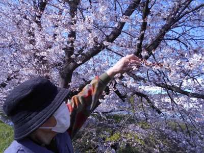 桜を眺めながら、私と同じぐらいの年齢だよ