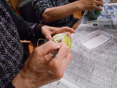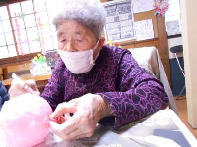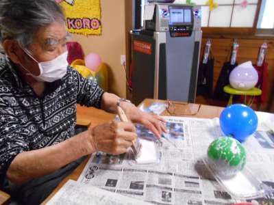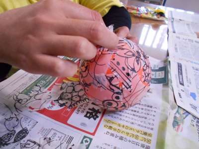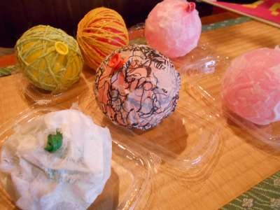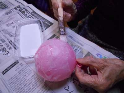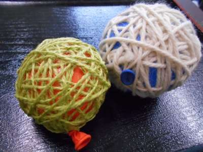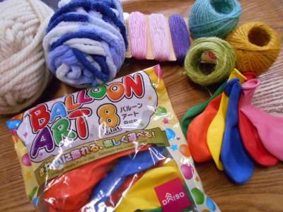 もう1つの風船は、紐をグルグル巻きつけていきます