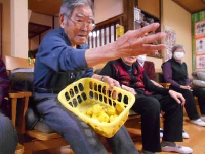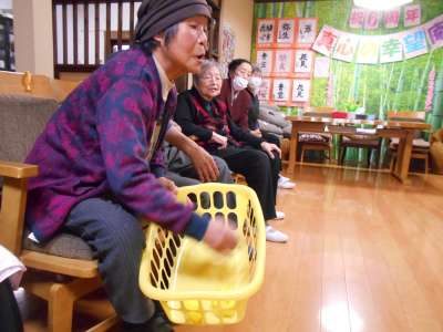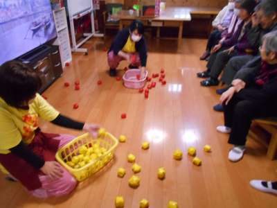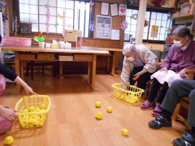 本日のレクリエーションは玉入れ競争を行います