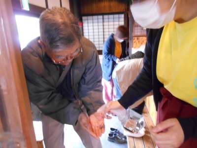玄関にて手の消毒行っていただきます