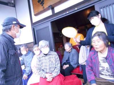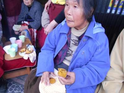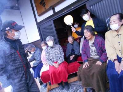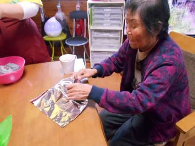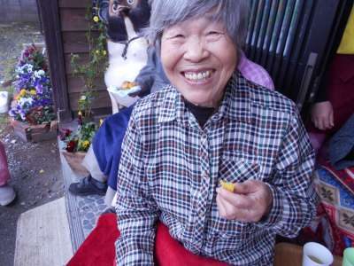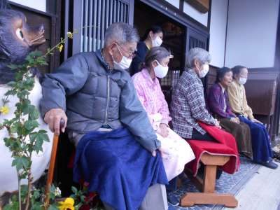 屋根のある所で、皆さん作っているのを楽しそうに見て