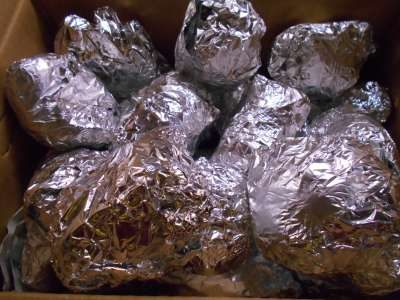 スタッフの手違いで、芋に新聞紙を包み過ぎ