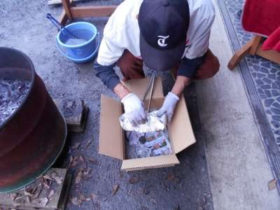 を使って焼き芋を作ってくださいました