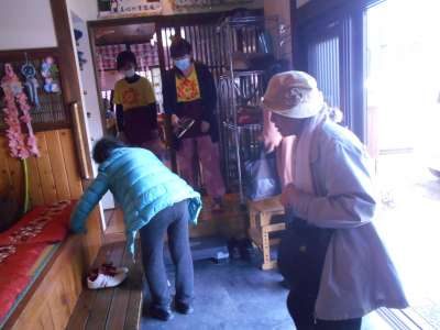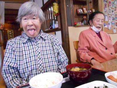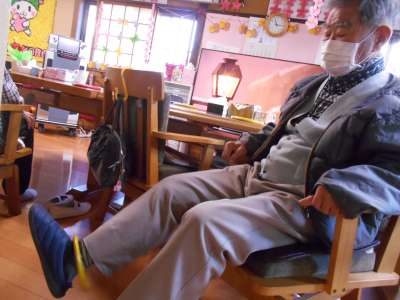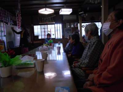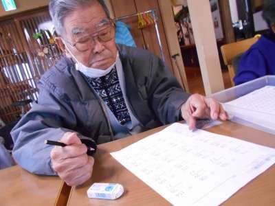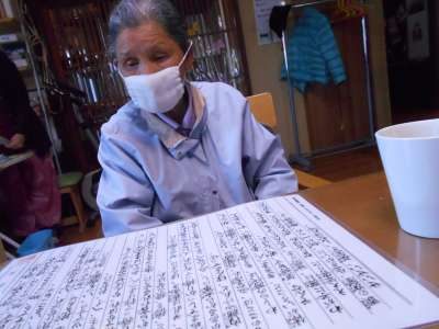朝の歌や‘ぼけたらあかん’の唱和で大きな声で