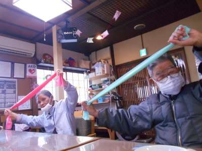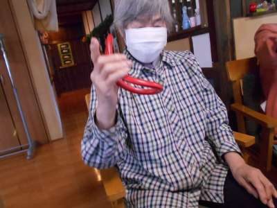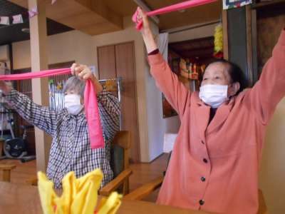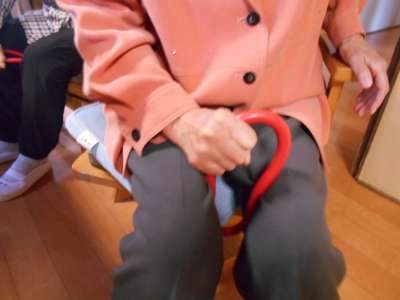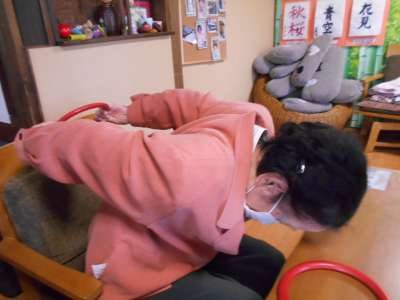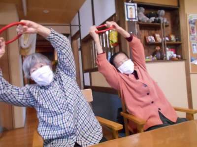 輪投げ用の柔らかい輪っかを使い上肢運動や
